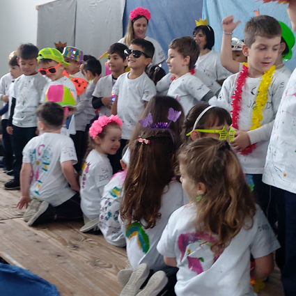 Los chicos de sala de 3 del turno mañana y del Taller de 3 y 4 años musicalizaron y bailaron la Canción Bandera de mi País de Magdalena fleitas y, junto los nenes de las demás salas, estrenaron la canción "celeste, blanca y celeste" que será cantada todos los días para el izamiento y arrio de nuestra insignia patria